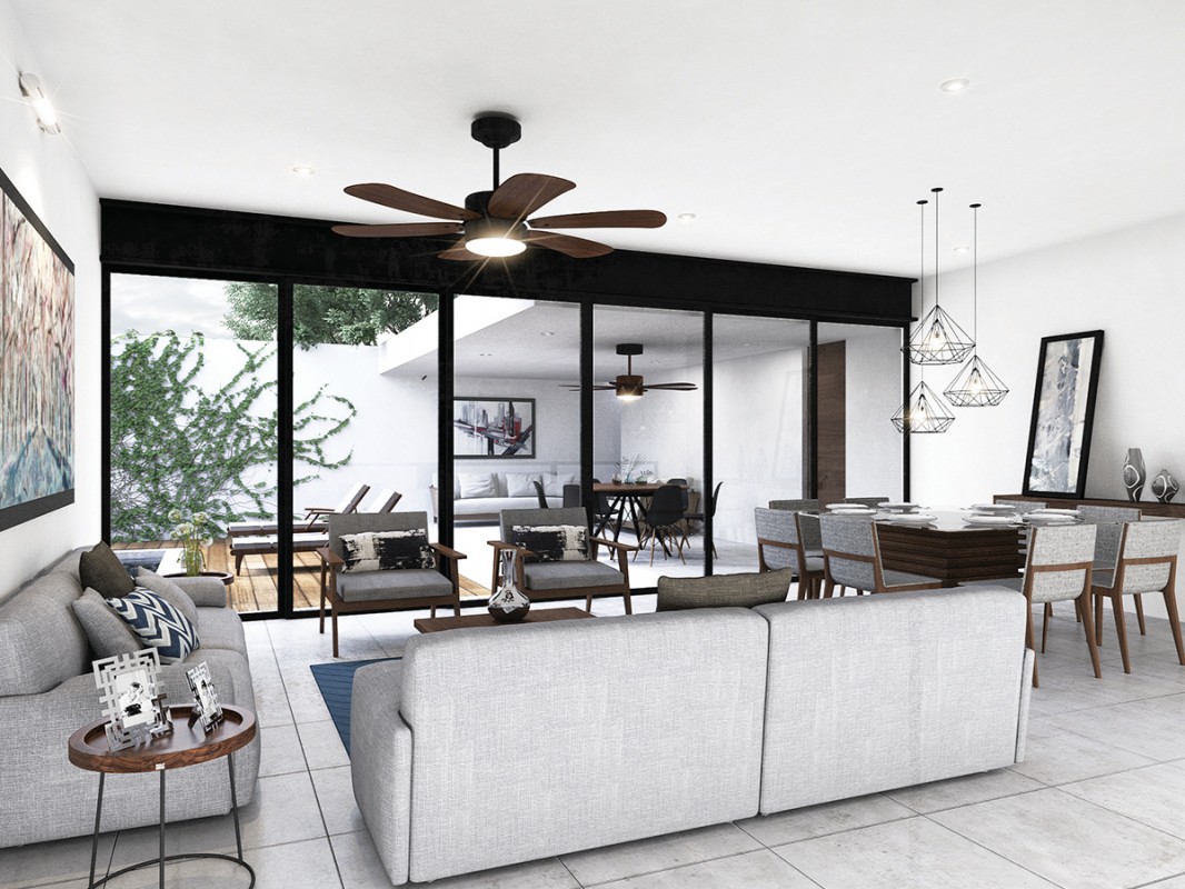 -Preparación para abanicos en cuarto de servicio, cocina, terraza, recámara 1, recámara principal y clóset recámara principal.