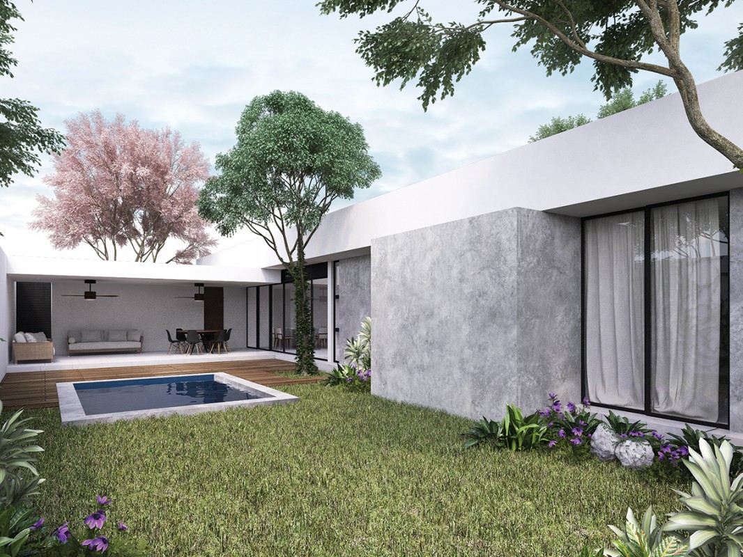 -Muros de cemento pulido o chukum (según la elección del piso) con buñas interiores y exteriores.